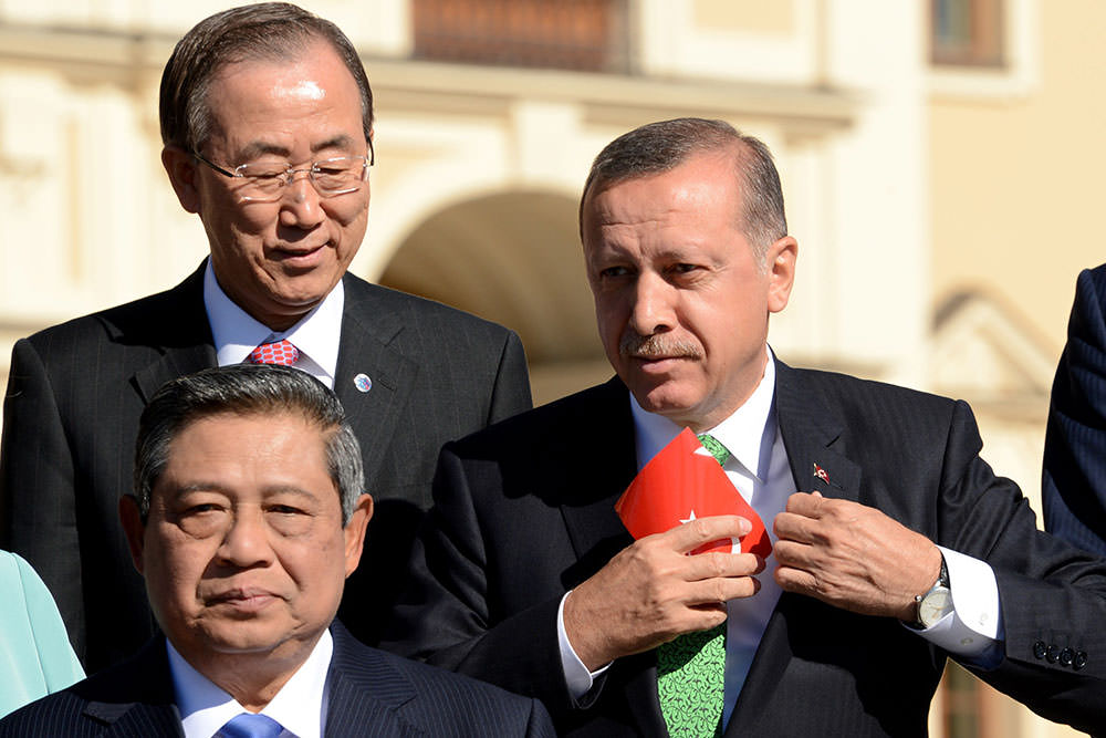 | President Erdoğan was putting Turkish flag in his pocket in G-20 Summit 2013 Photo Shoot. |